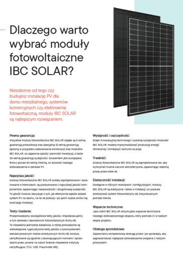 Dobór odpowiednich modułów PV wymaga nie tylko porównania parametrów technicznych, ale także dostępu do sprawdzonych źródeł, fachowego doradztwa i kompleksowej obsługi. Profesjonalna hurtownia PV – taka jak IBC SOLAR – to partner, który oferuje szeroki wybór technologii, dostępność magazynową, certyfikowane produkty oraz wsparcie na każdym etapie współpracy. Dzięki temu instalacja fotowoltaiczna może być dopasowana do indywidualnych potrzeb, a cała inwestycja – bezpieczna, efektywna i zgodna z najnowszymi standardami. Jeśli zależy Ci na jakości, niezawodności i pewności wyboru – zacznij właśnie tutaj.